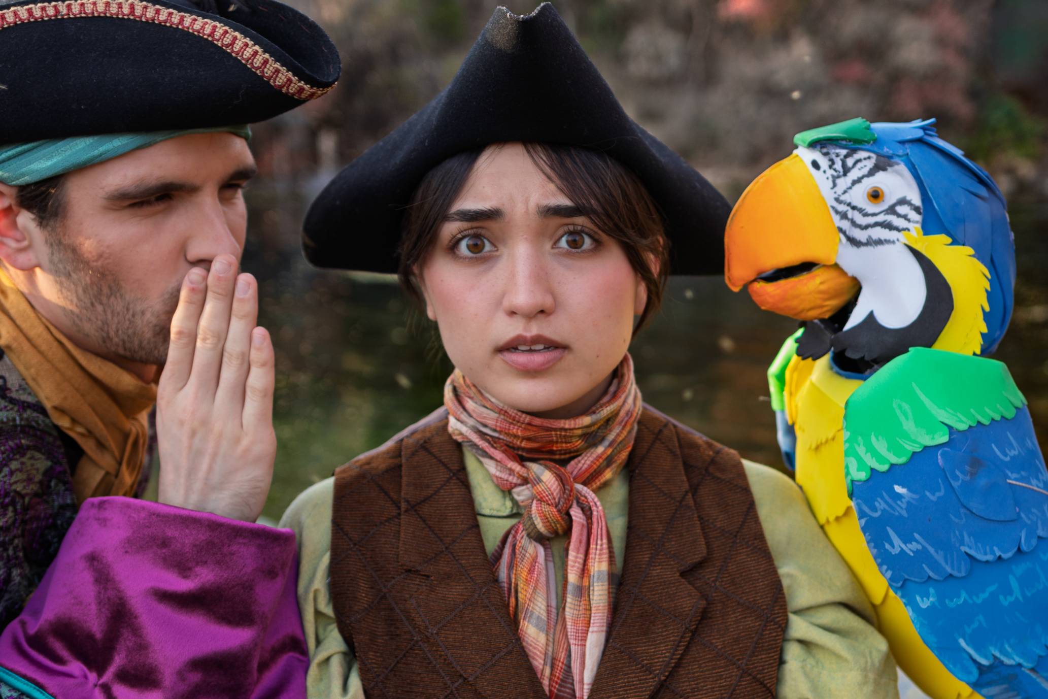 This nautical tale features Jordan Rockhill (Jim Hawkins), Rem Remy (Doctor Livesey), Drew Dunson (Squire Trelawney), Cadence Dodd (Red Ruth), Jack Peznola (Lucky Mickey), Miguel Gaytan (Black Dog), Andrew Morataya (Captain Smollett), and Jordan Spena (Long John Silver), Elise Ray (Joan the Goat), Natoz Walker (Israel Hands), Faraz Mobli (Dick the Dandy), Christian Nathaniel (Killigrew the Kind), Mick Preuit (Grey), Jay Brown (Parrot), Sonny Young (Ben Gunn/Blind Pew), Cooper Clarke (Boson) and the talent of faculty members Linda Nenno Breining (Grandma Hawkins) and Neil Patrick Stewart (Bill Bones), and the voice of Ron Ulen (Ghost of Captain Flint).